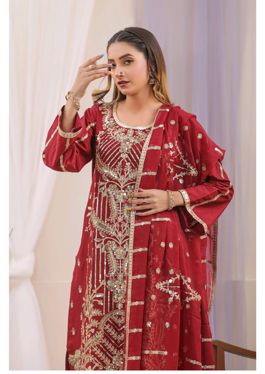 Organza Collection Heavy Sequence Embroidered Shirt Heavy Sequence Embroidered Dupatta Plain Satin...