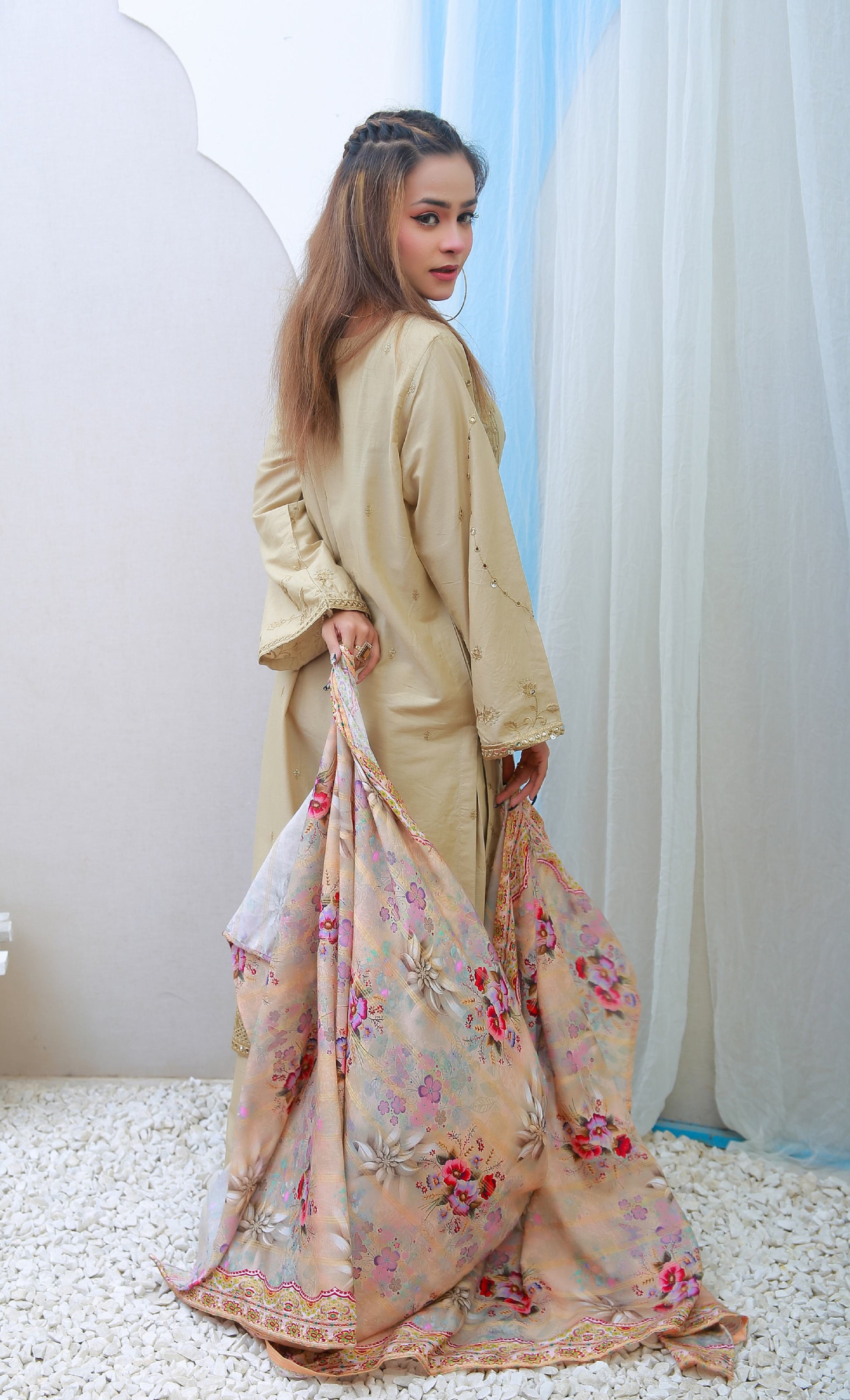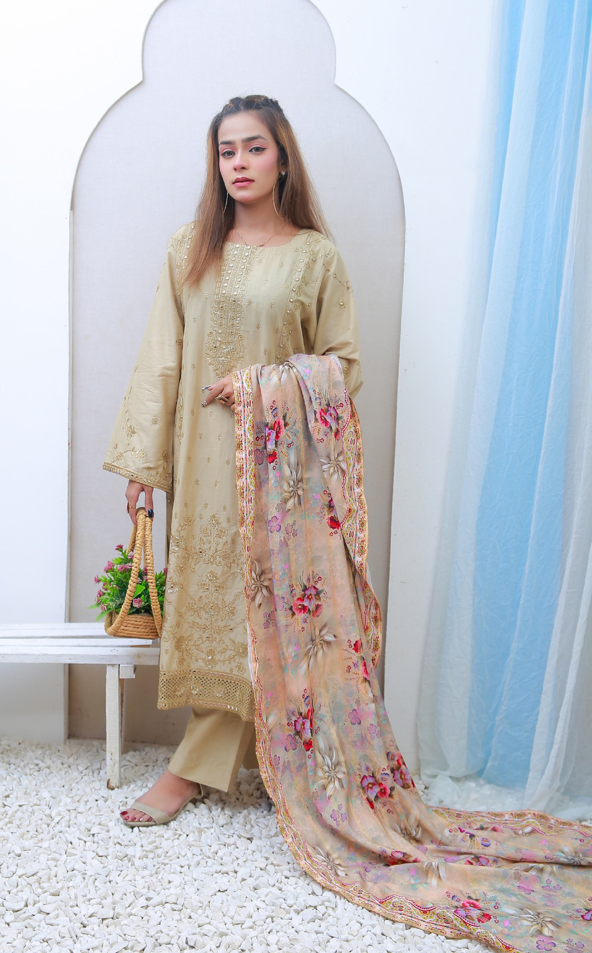 Digital Printed Lawn with Ckiken Kari  Embroidered Dupatta