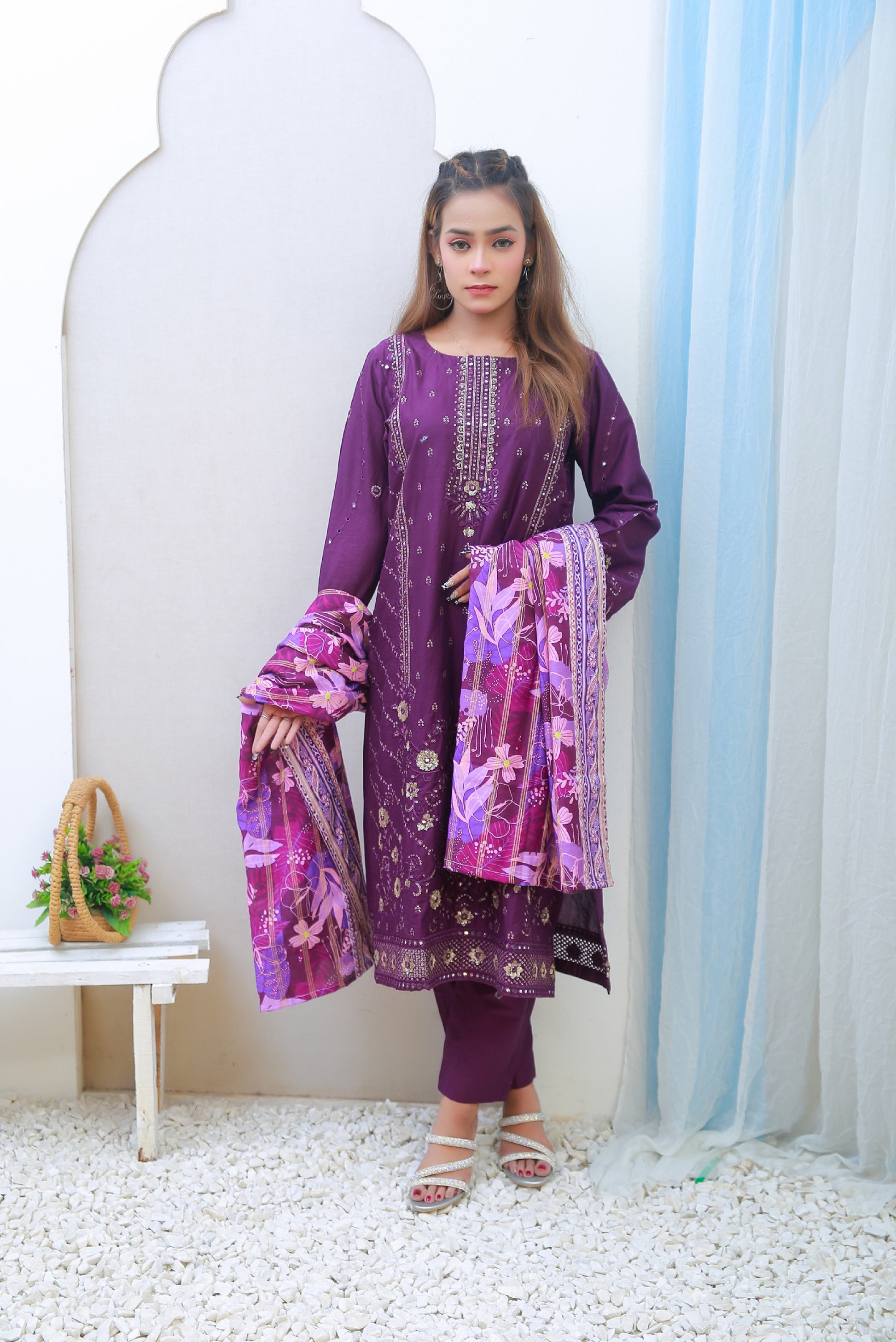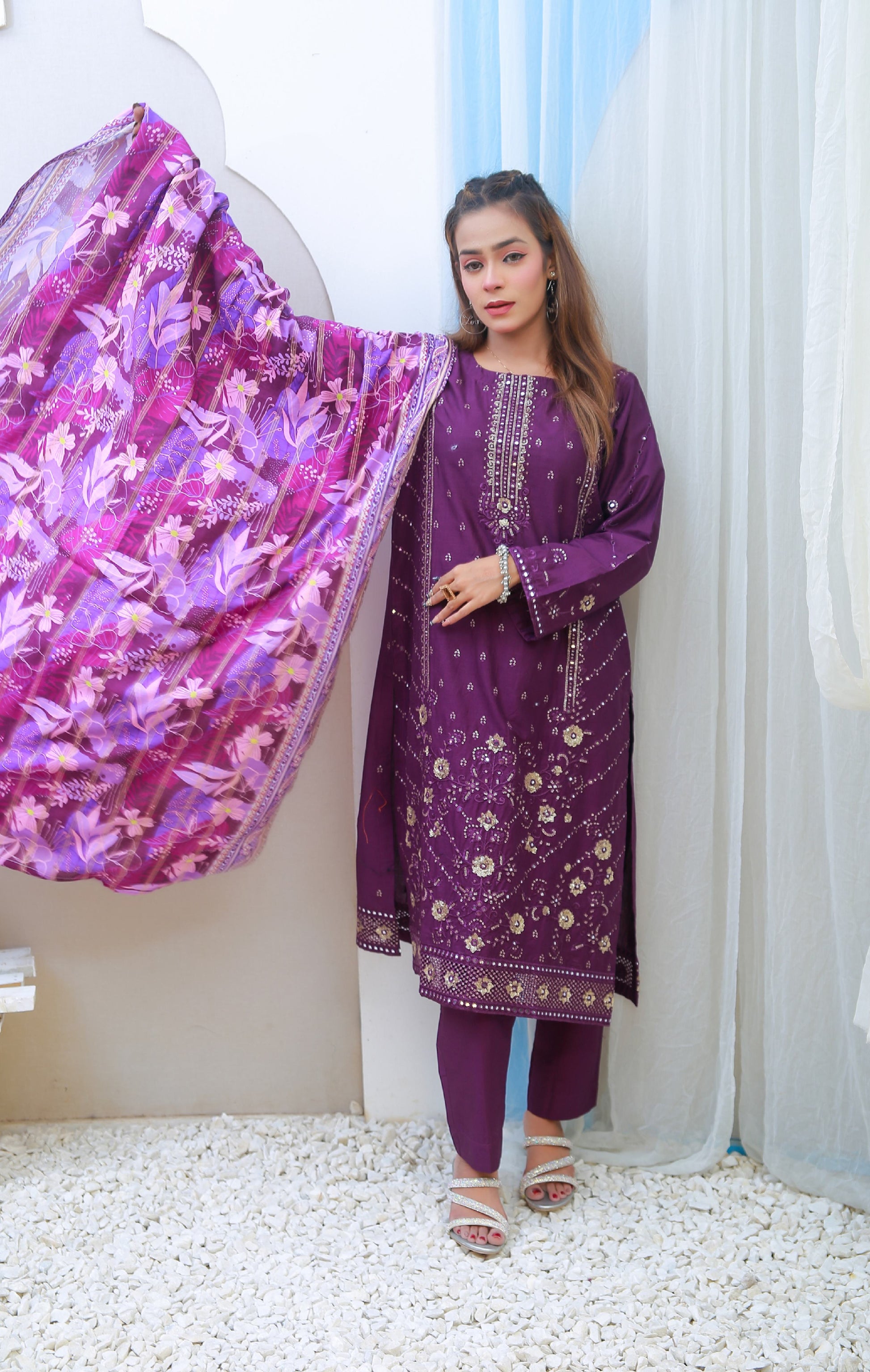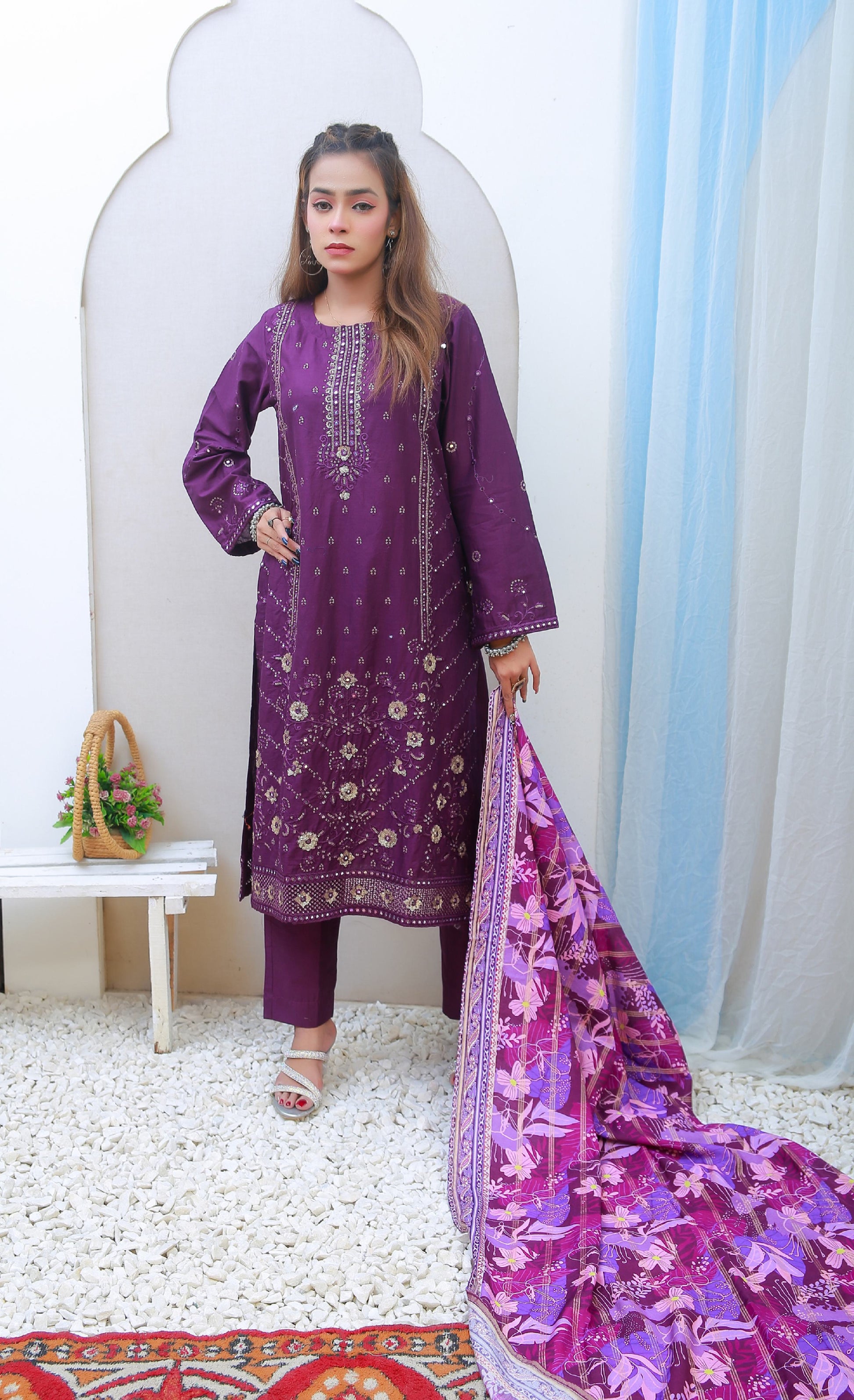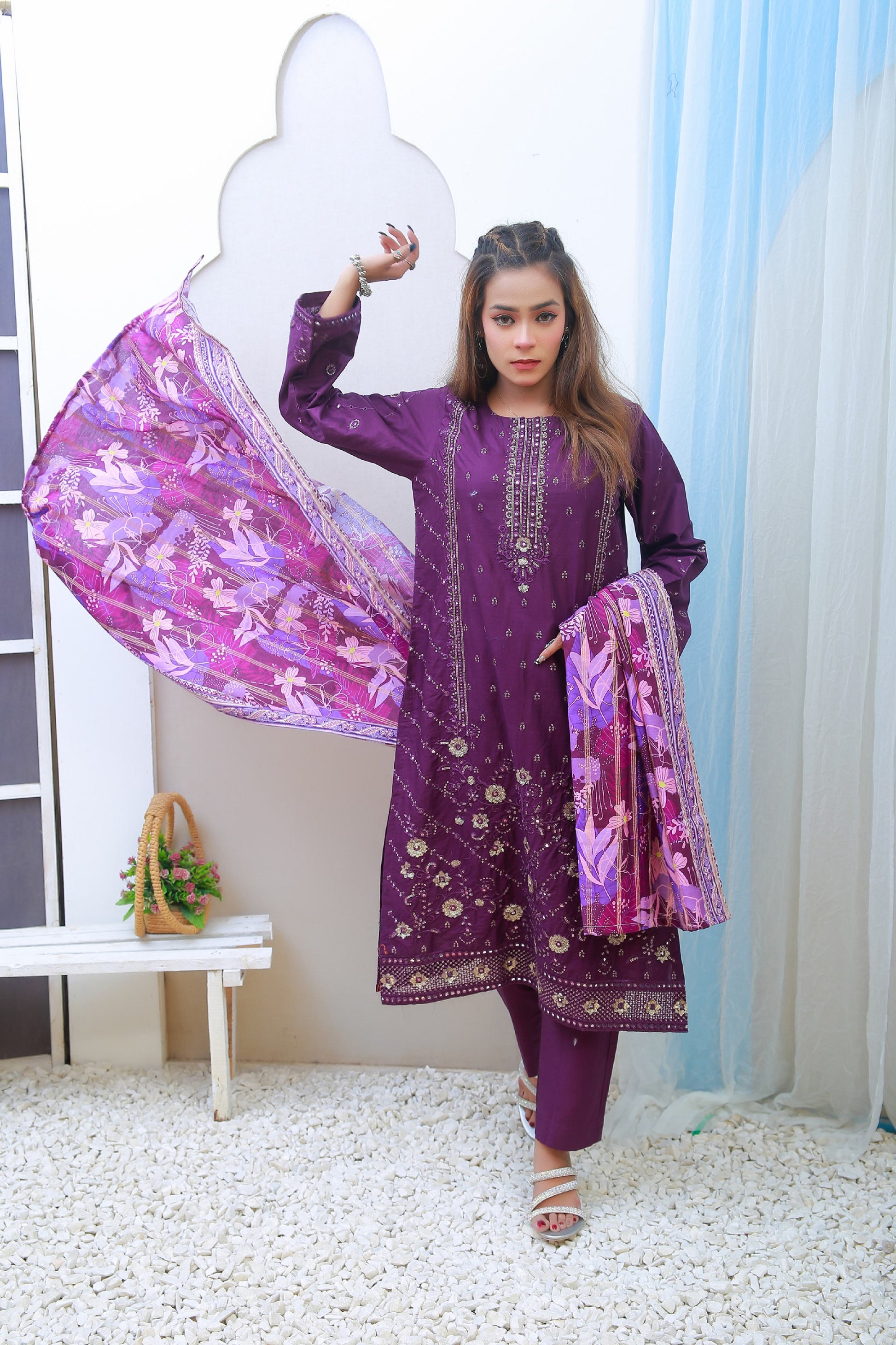 Digital Printed Lawn with Ckiken Kari  Embroidered Dupatta