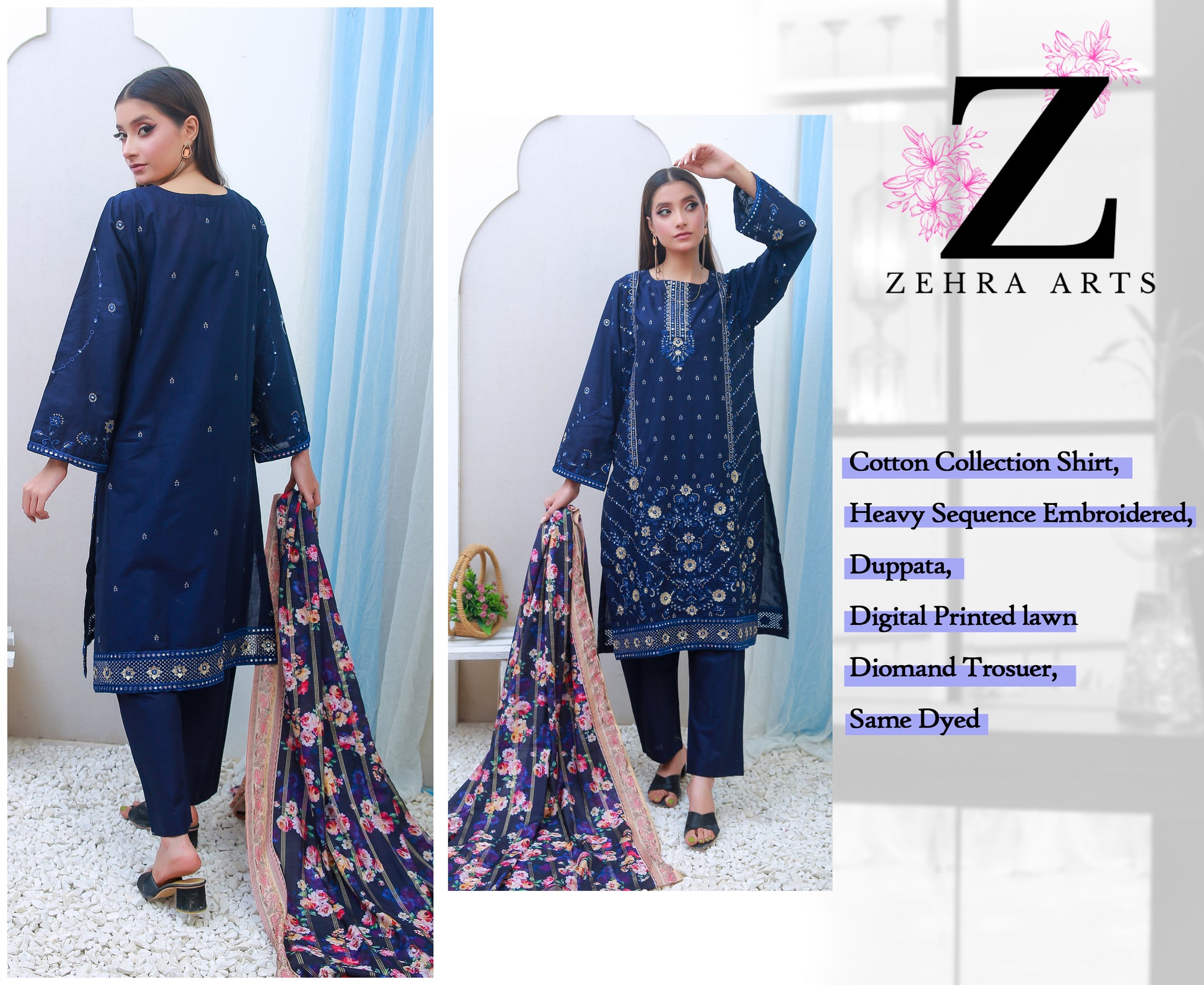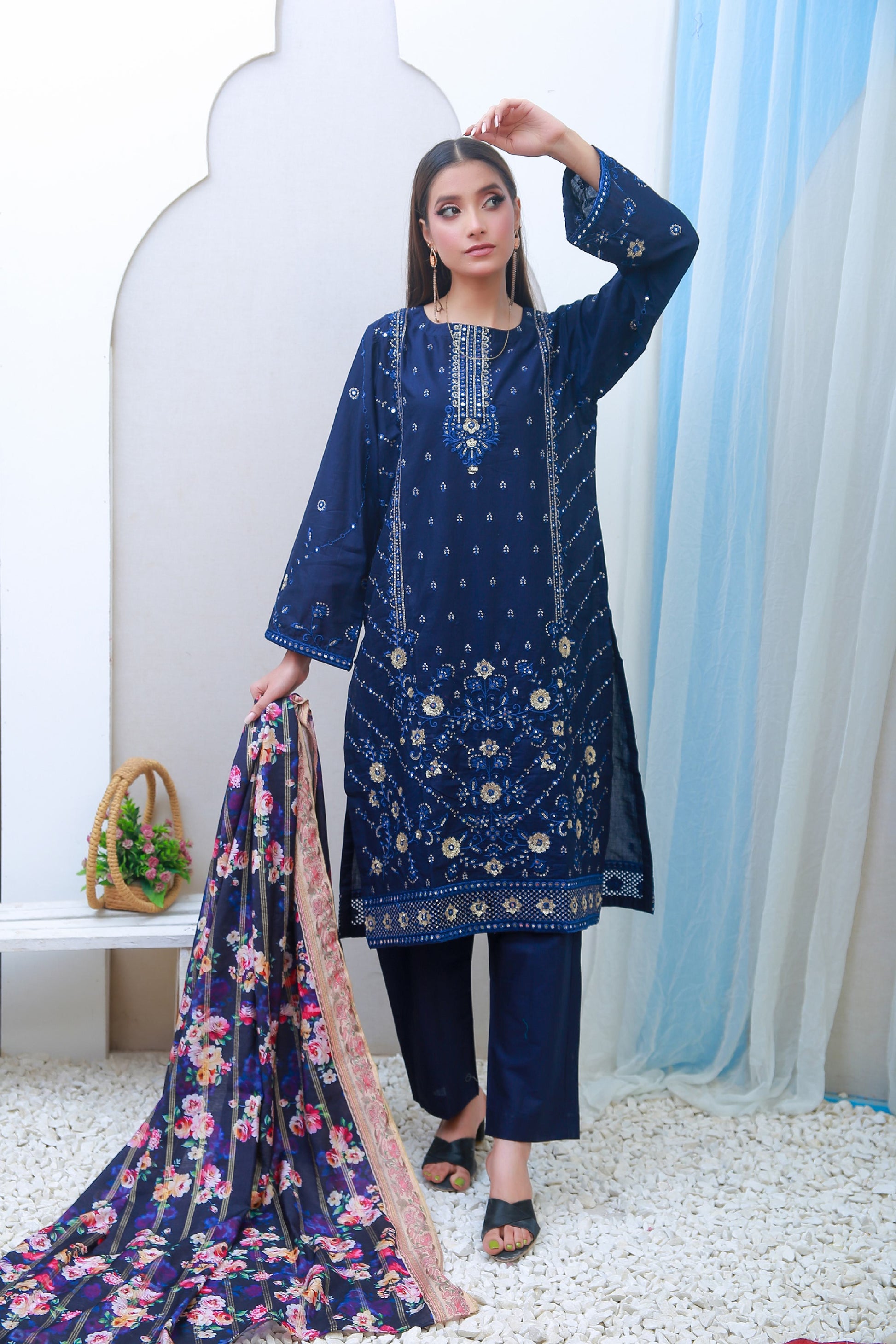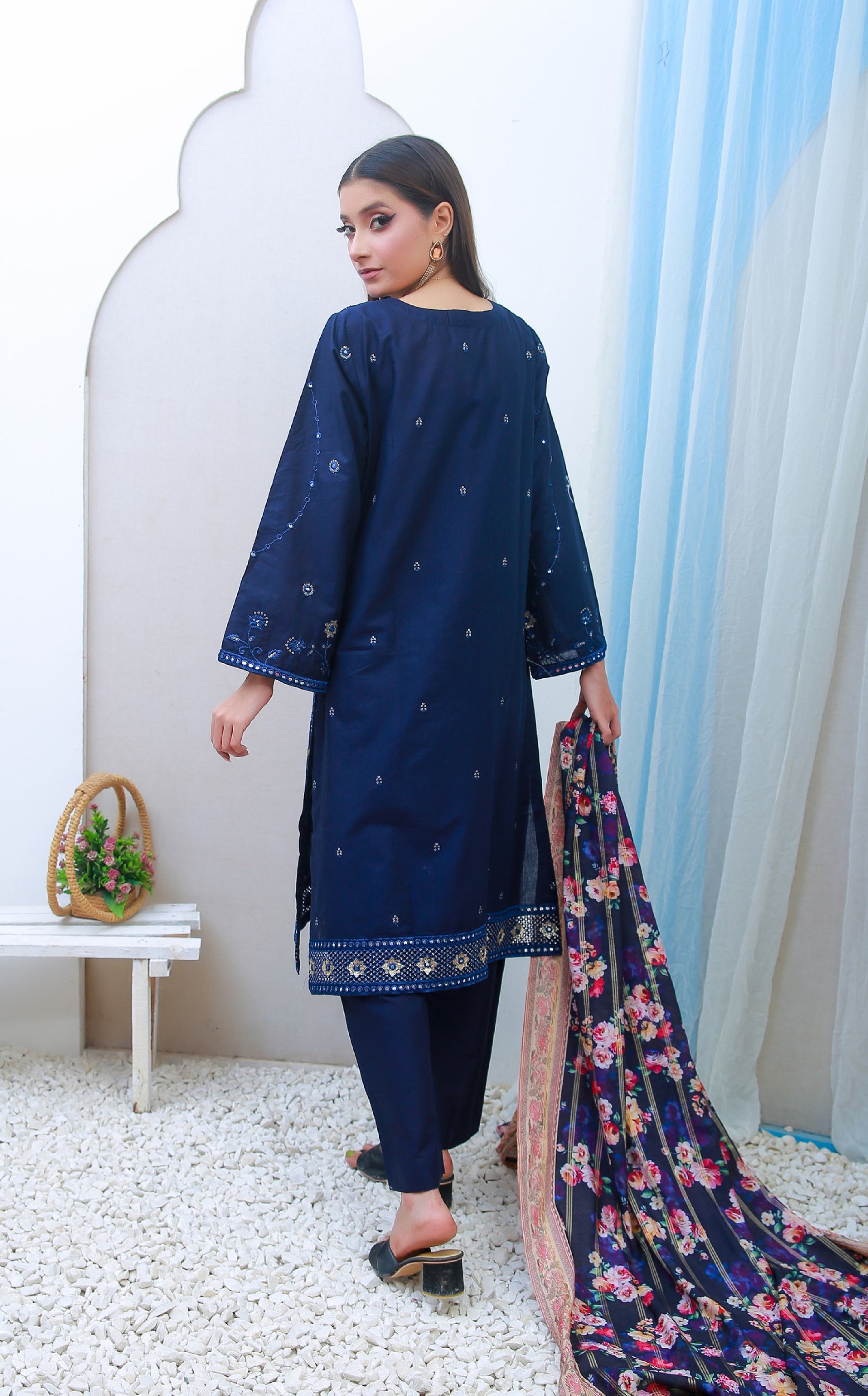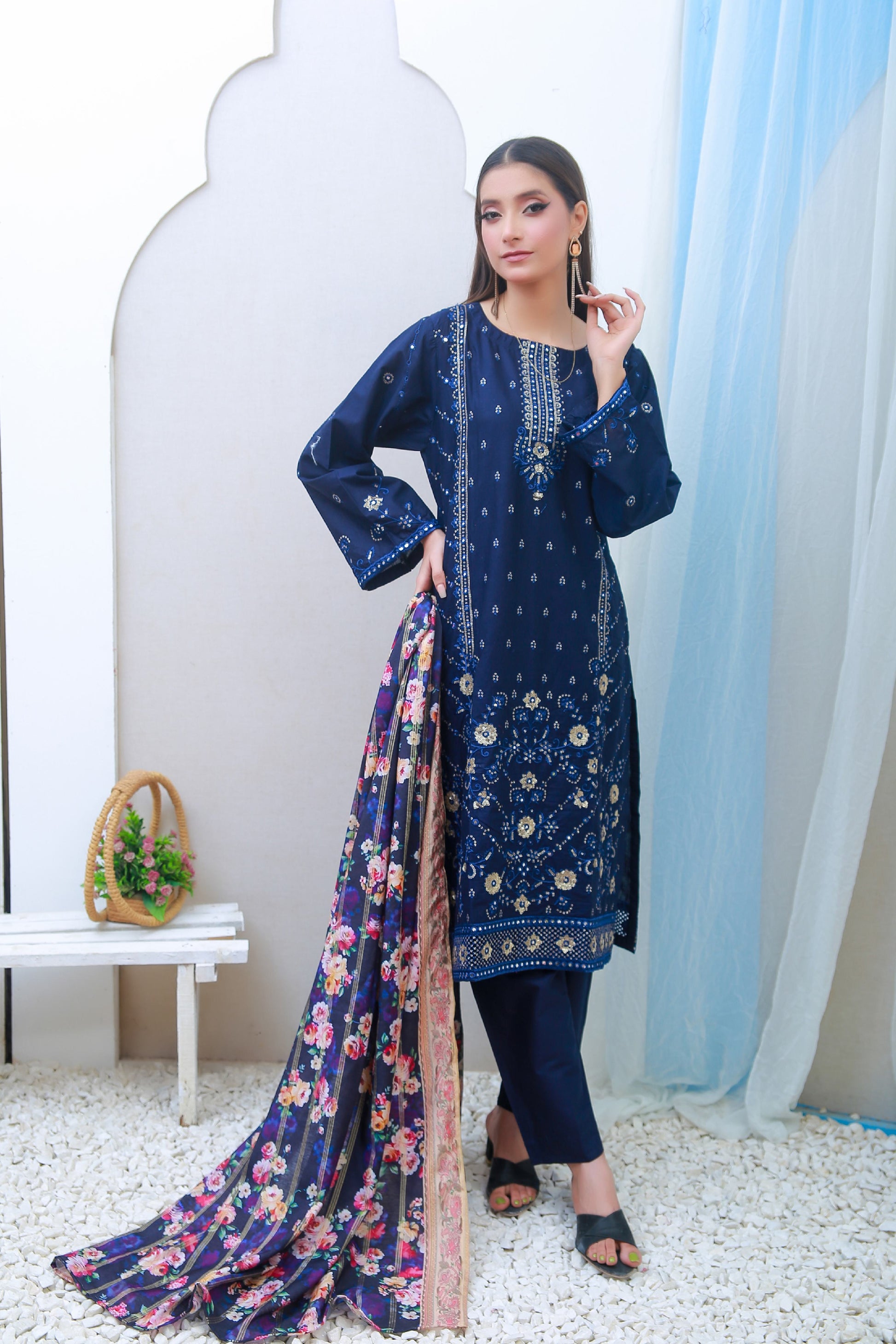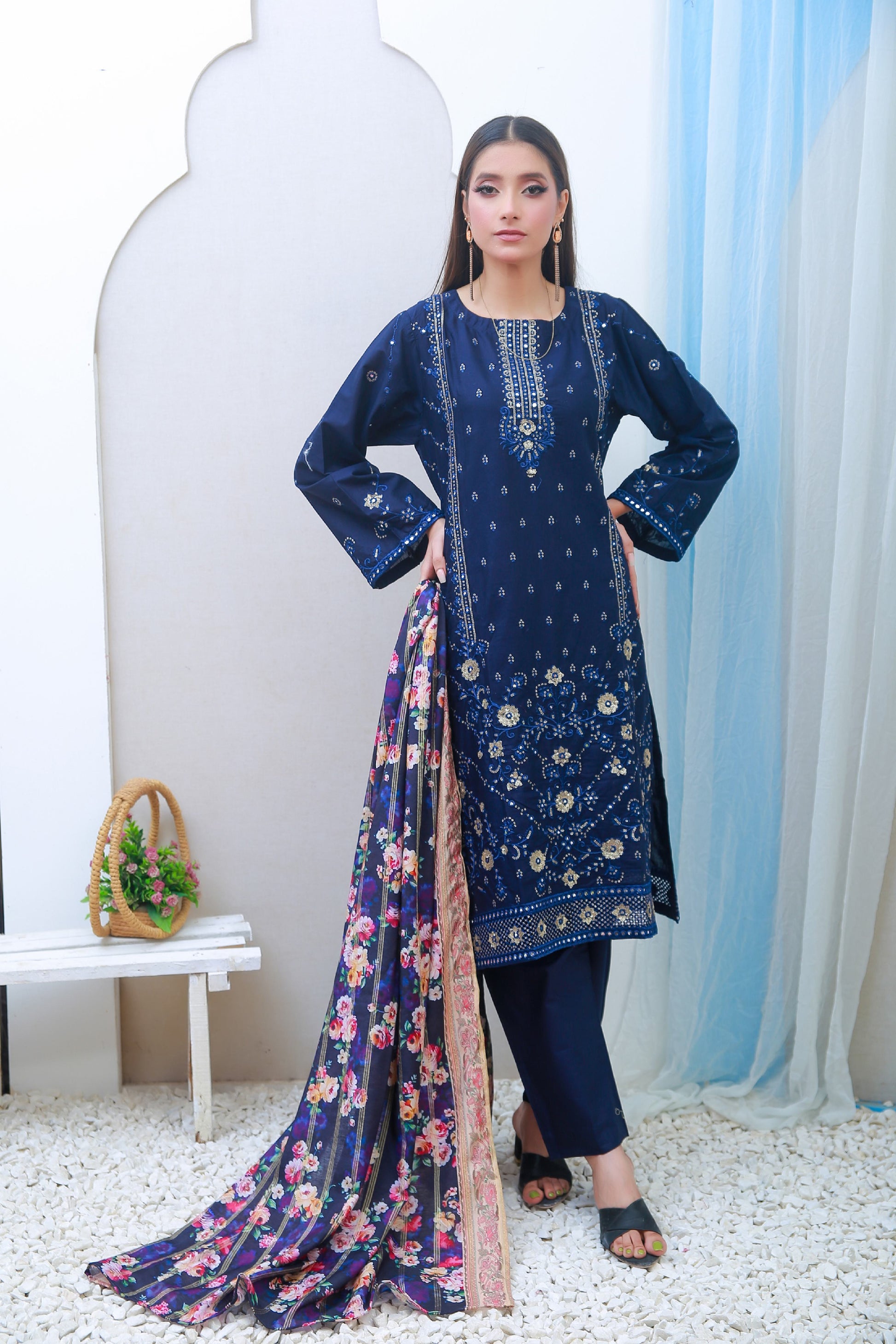 Digital Printed Lawn with Ckiken Kari  Embroidered Dupatta