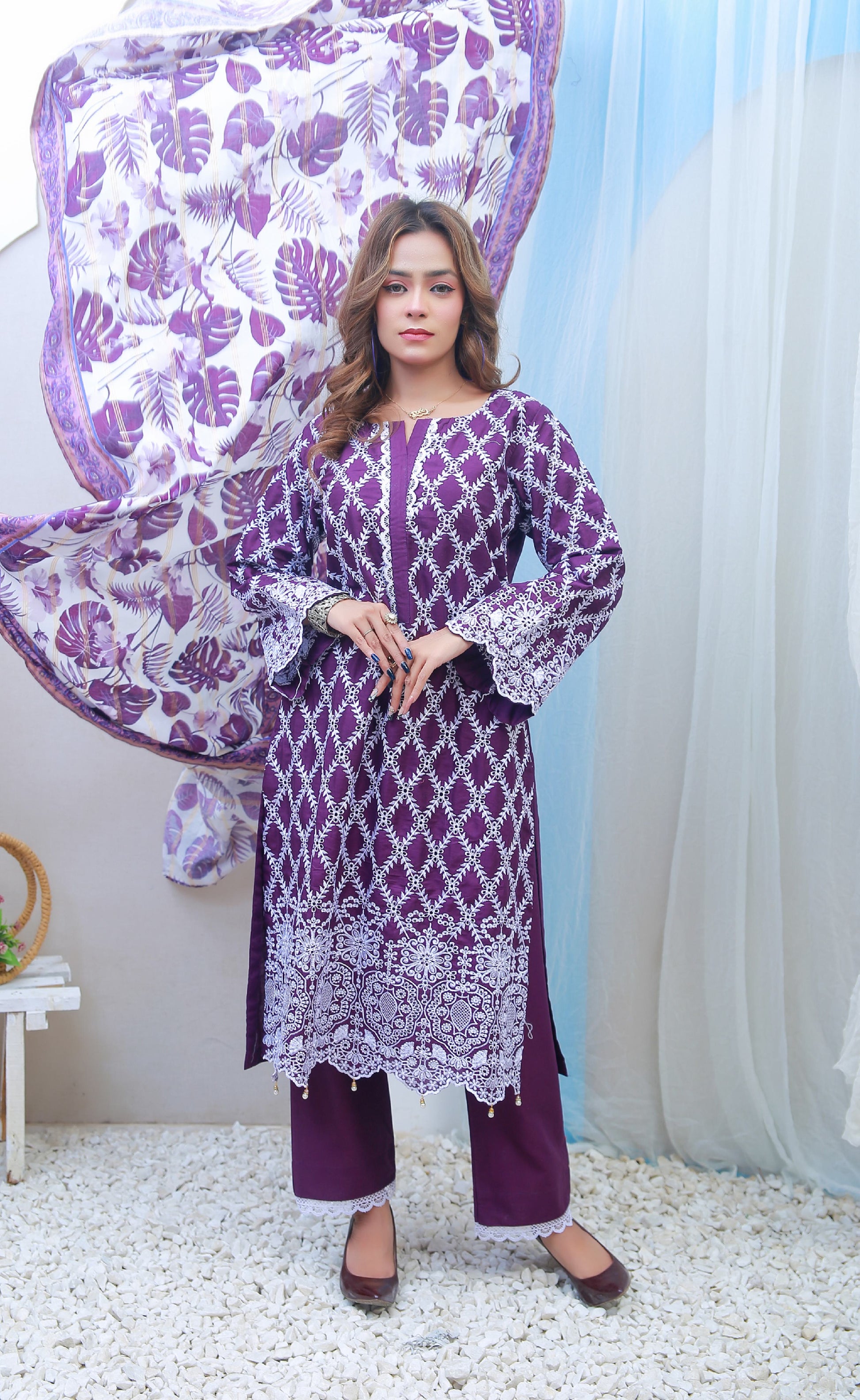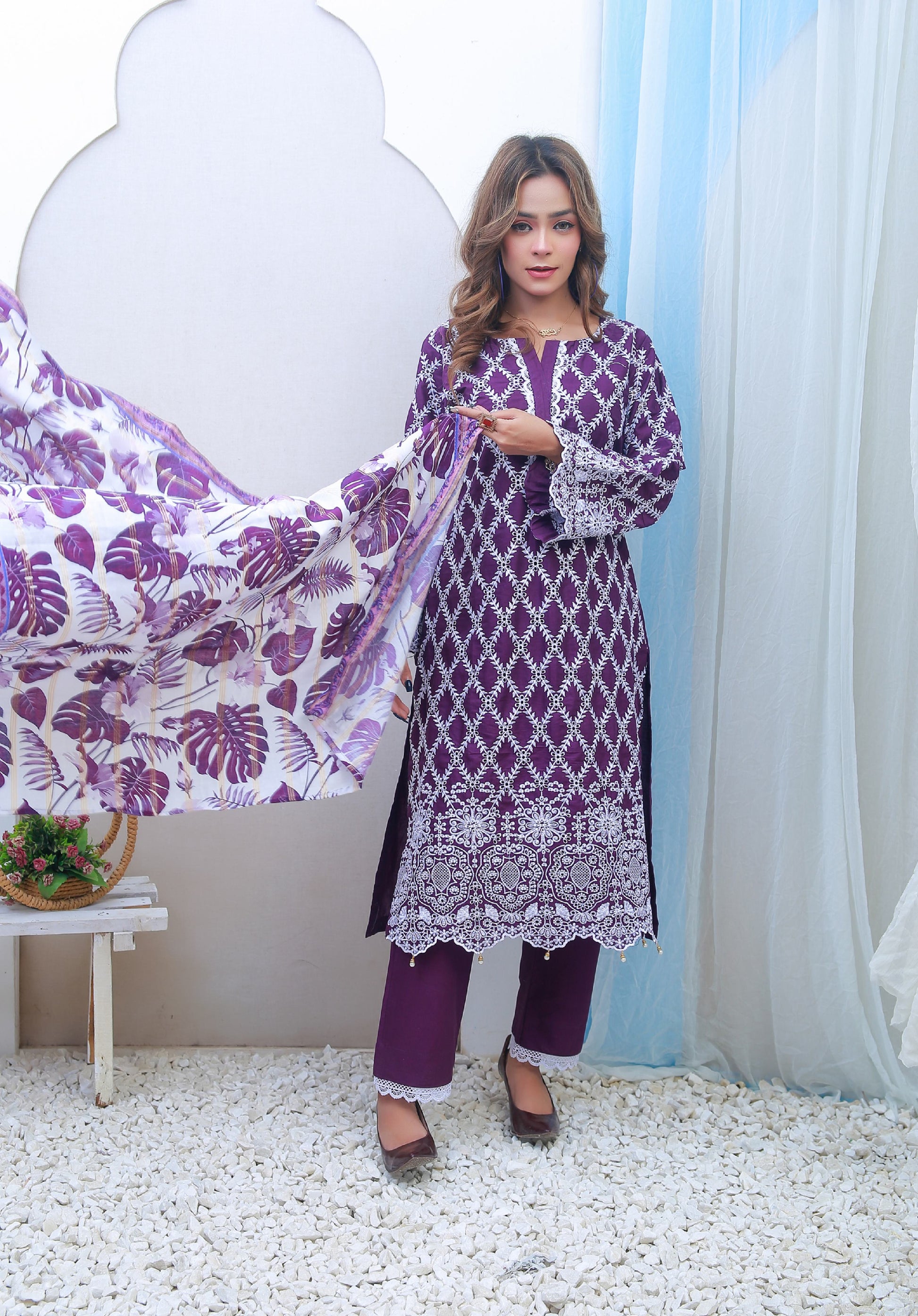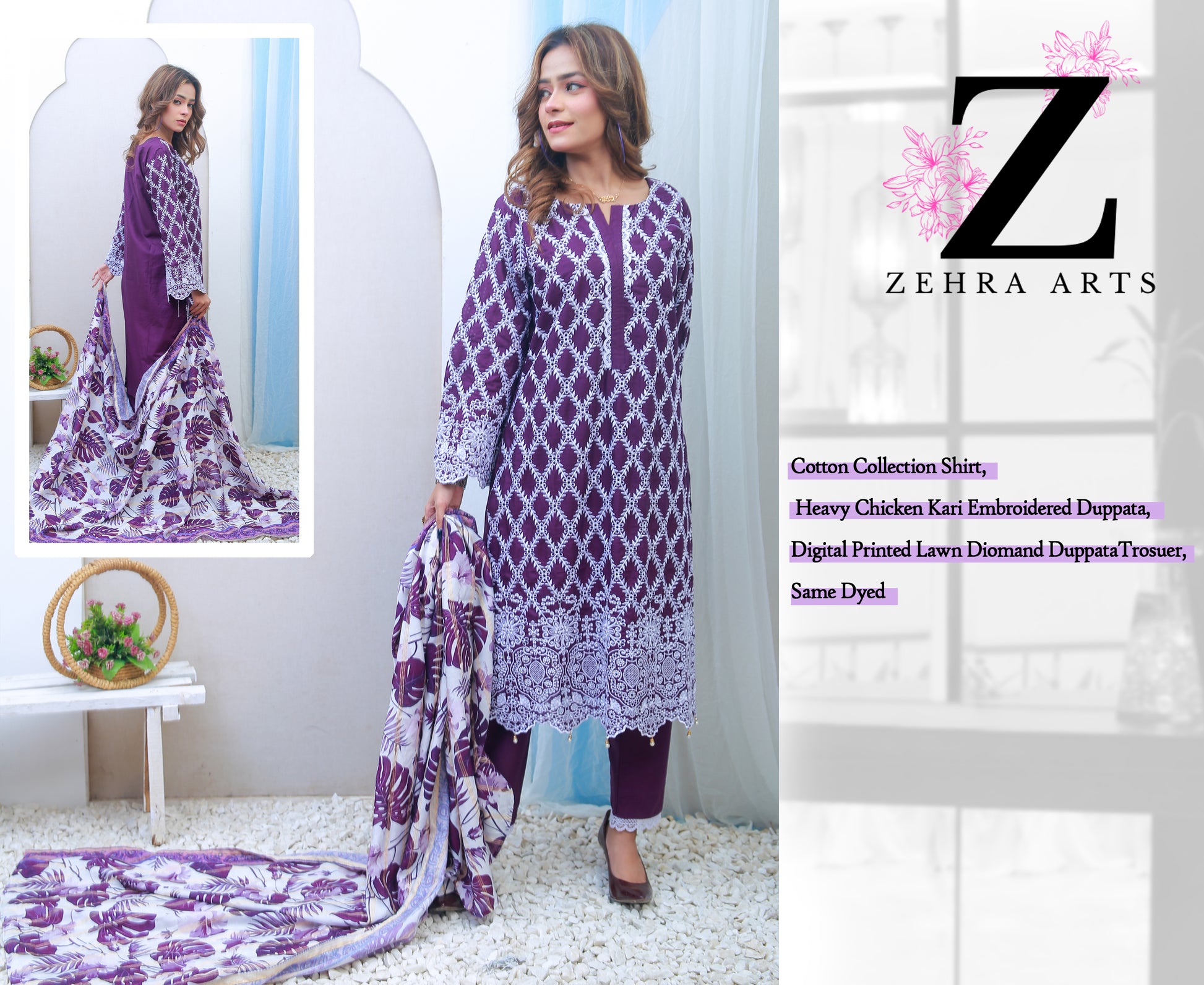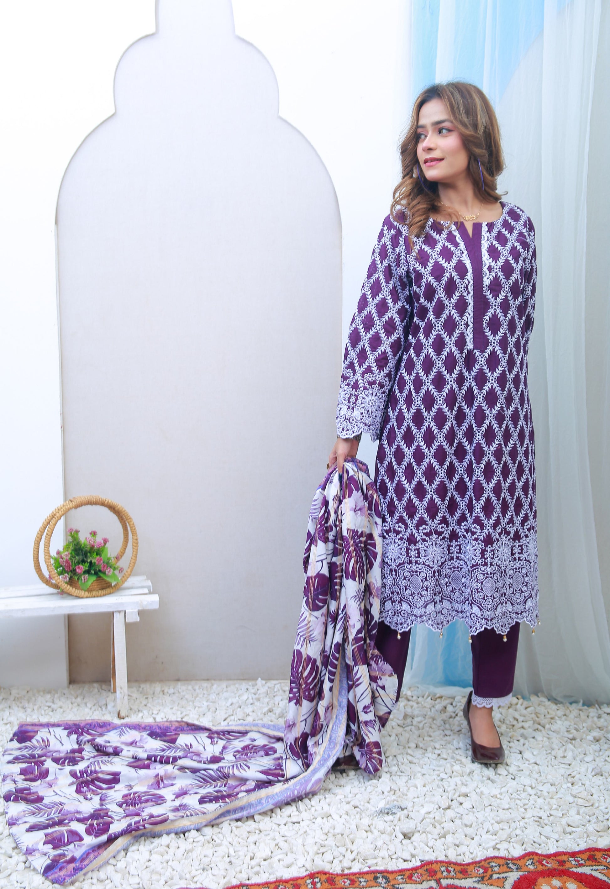 Digital Printed Lawn with Ckiken Kari  Embroidered Dupatta