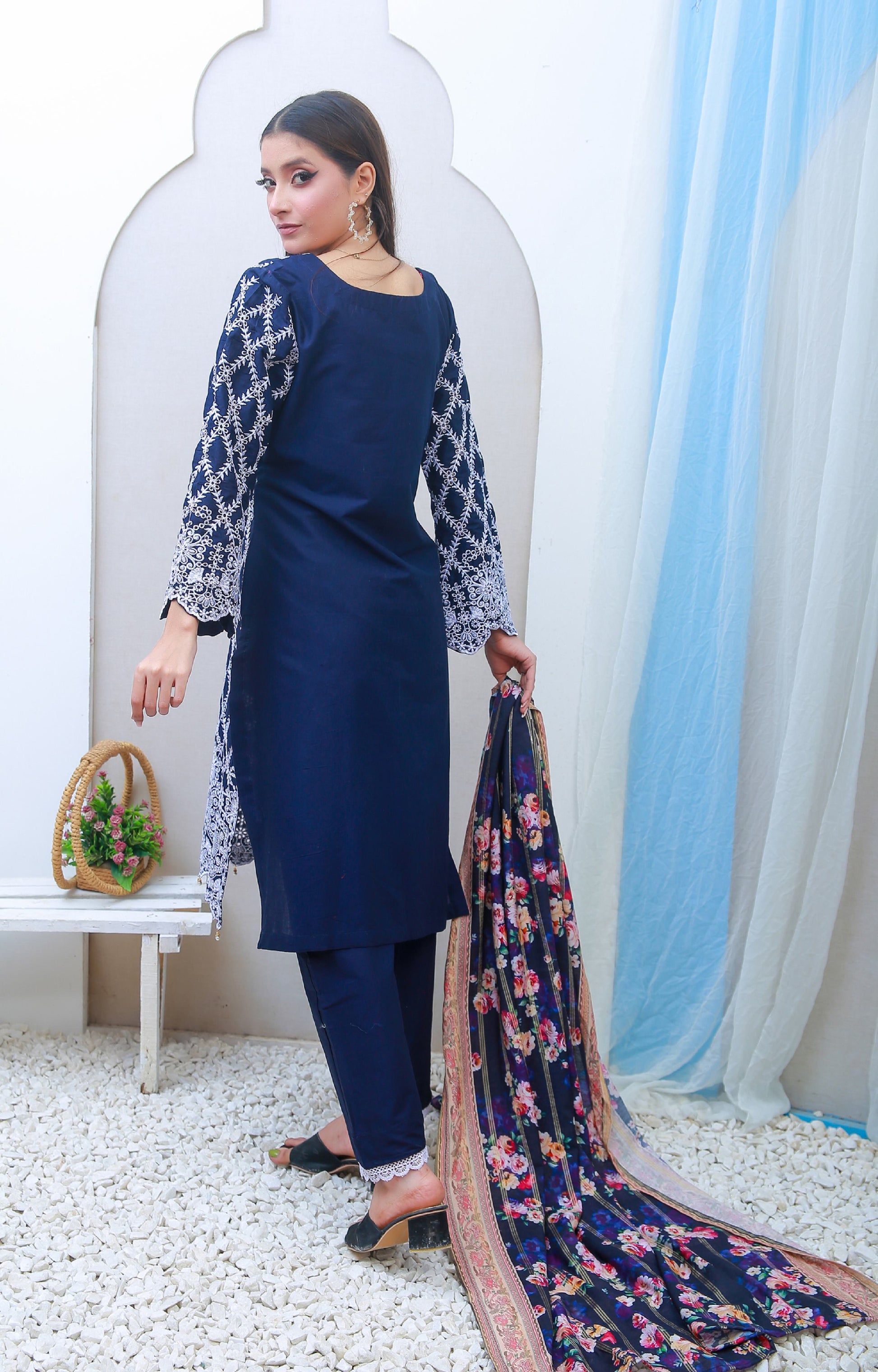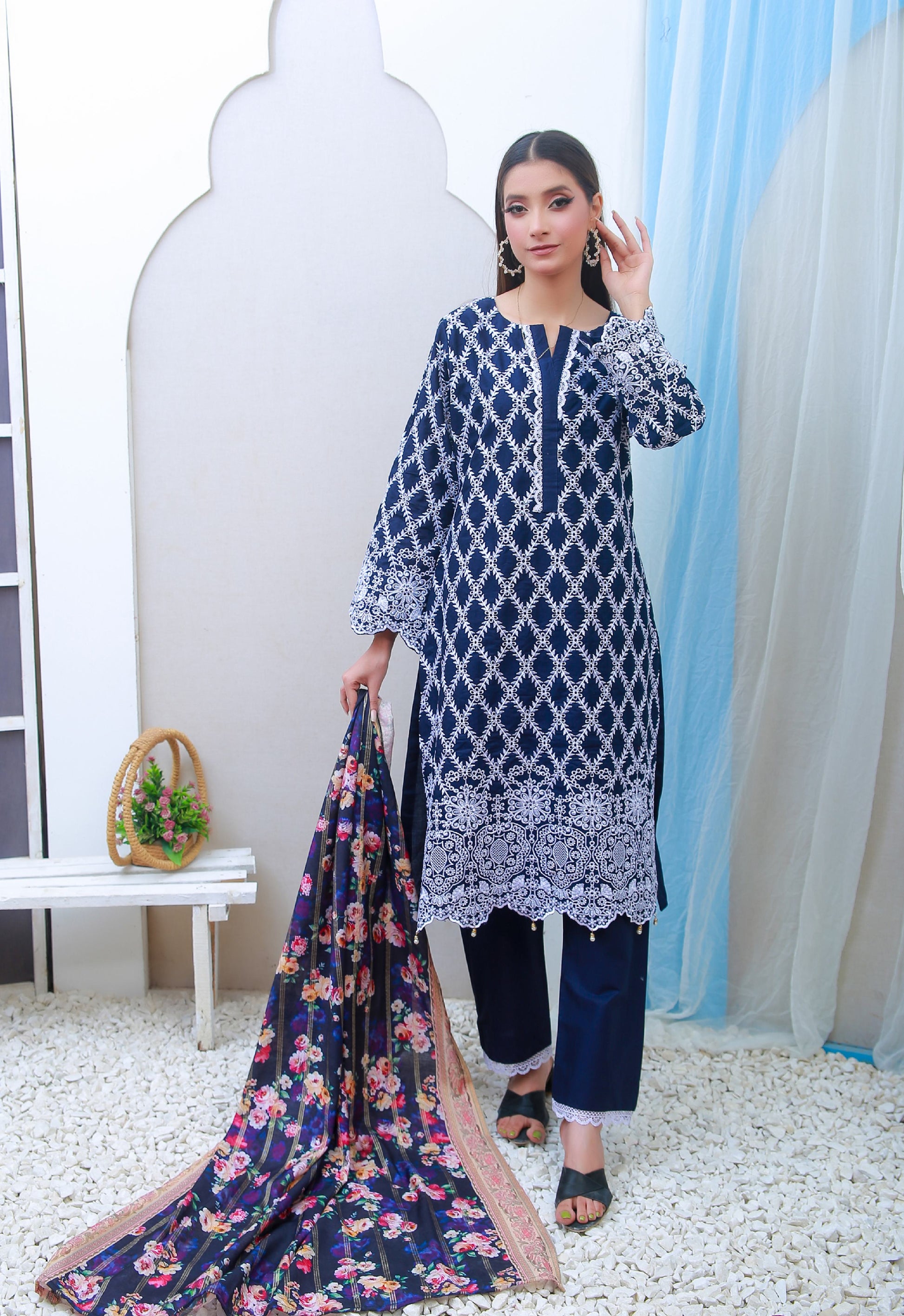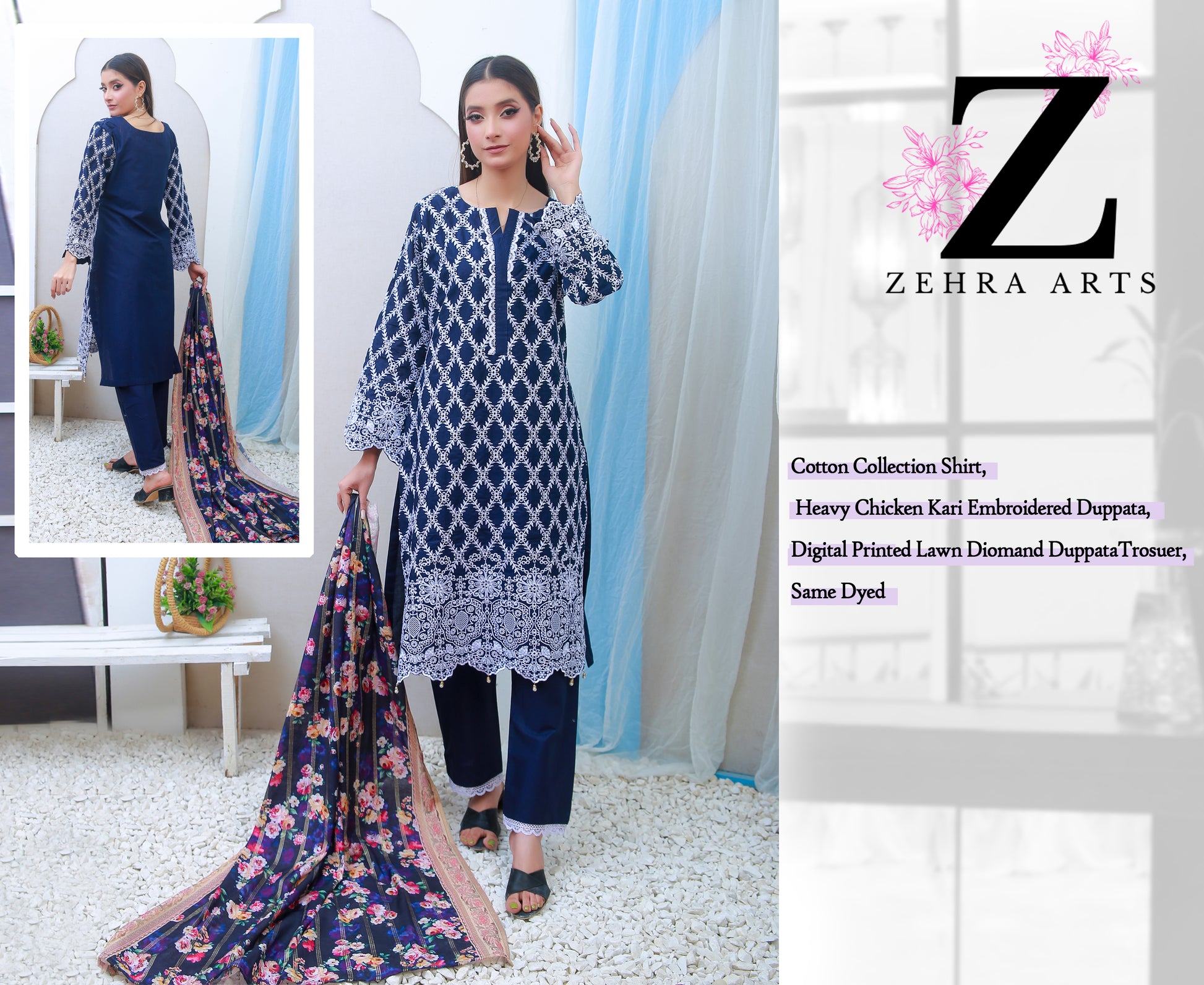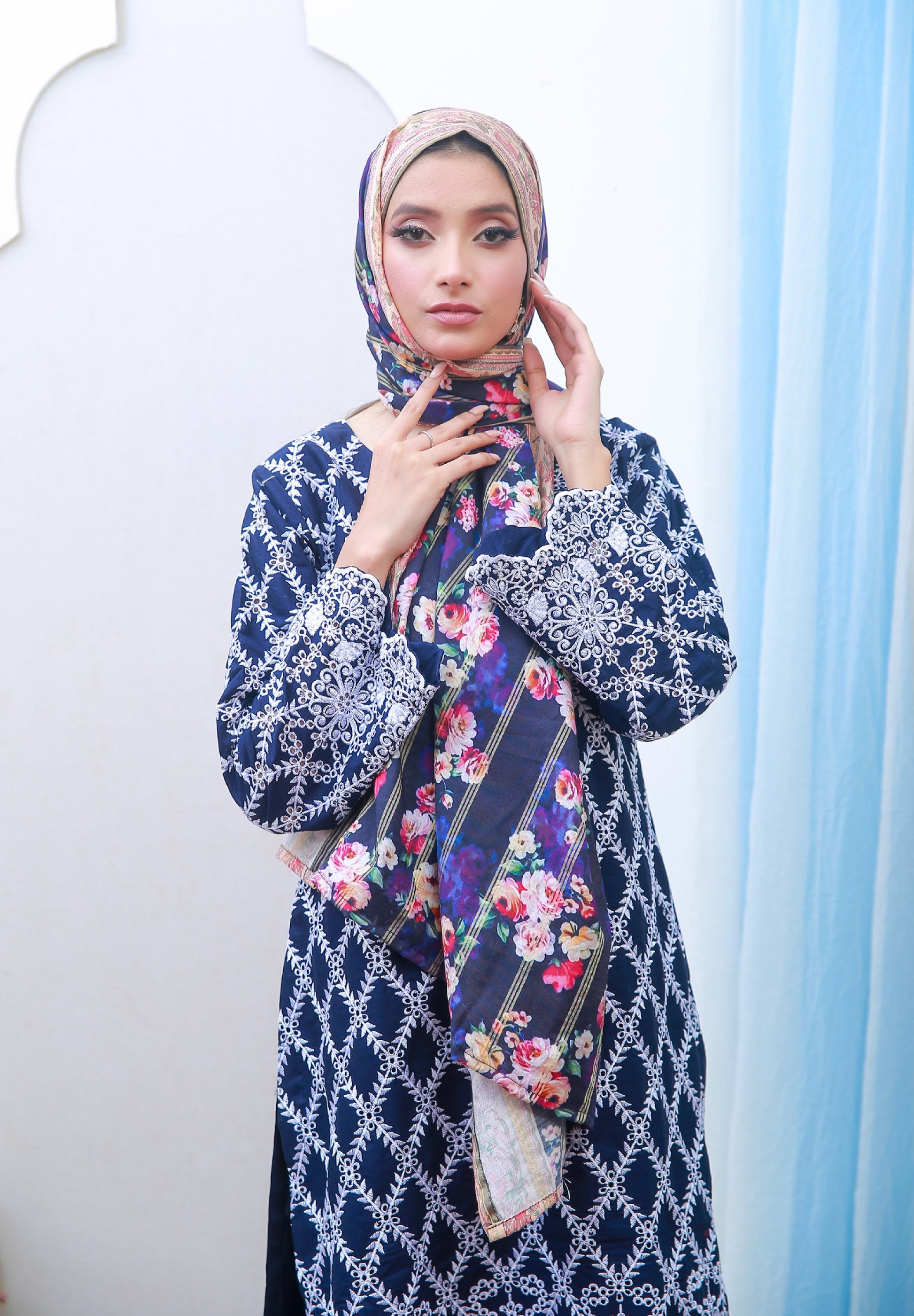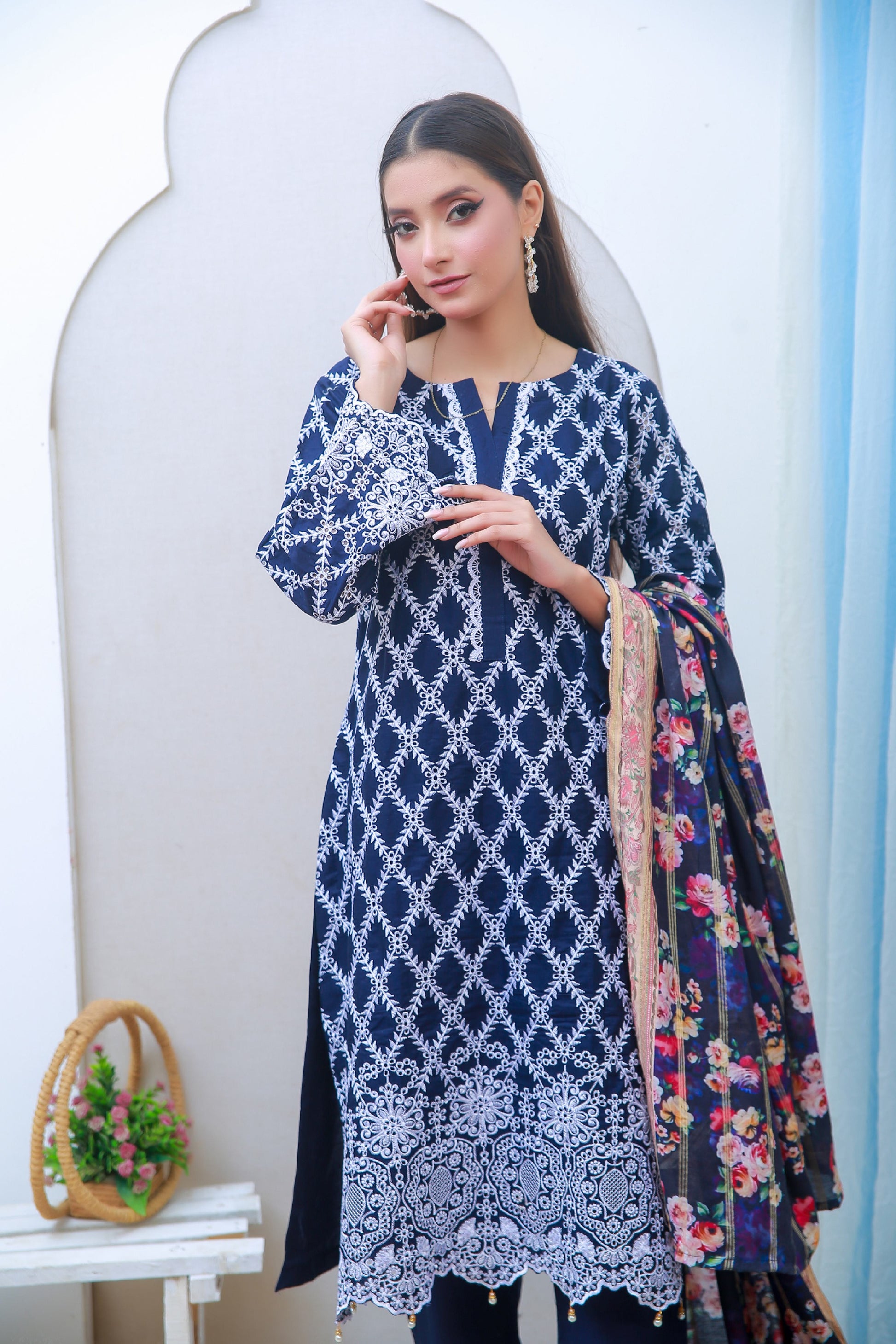 Digital Printed Lawn with Ckiken Kari  Embroidered Dupatta