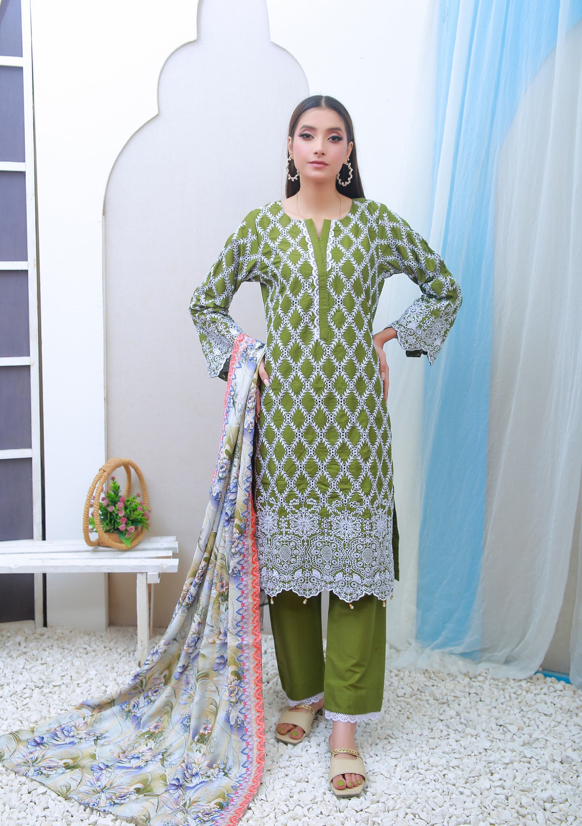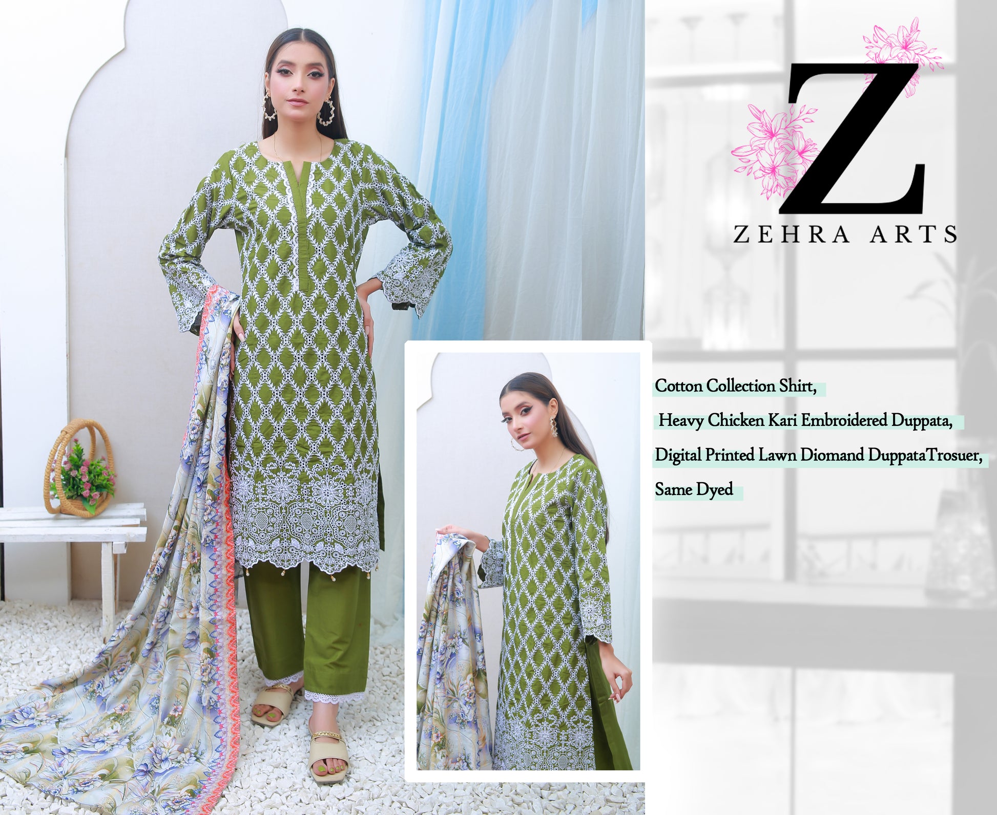 Digital Printed Lawn with Ckiken Kari  Embroidered Dupatta